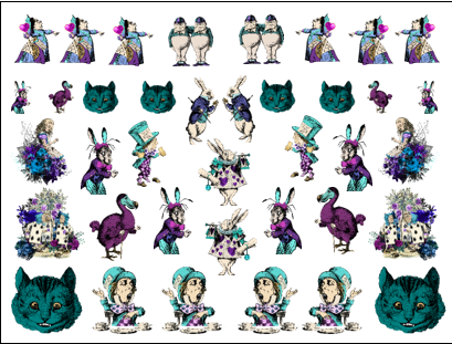 Beautiful Alice in Wonderland inspired waterslide decals.