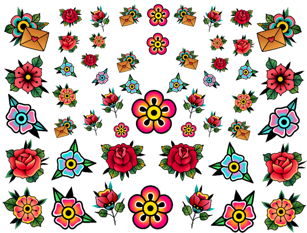 Old skool floral themed tattoo style images!